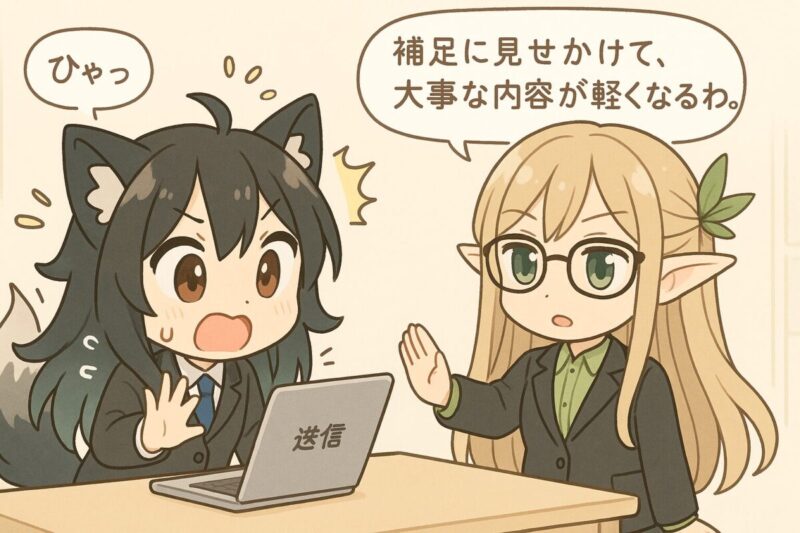メールは文書という特性を持ちながらも、会話的な性質も併せ持っています。そのため、読み手との心理的距離感を調整する機能が大きく働きます【1】。しかし、「ちなみに」のように口語的で軽快な印象のある表現が使われると、場面によっては適切さが疑問視されるのです。例えば社内のカジュアルなやり取りでは許容される一方、正式な契約や商談の場面では不適切となりかねません。このため、読者が「どの場面でなら問題ないのか」「代わりにどの表現を選ぶべきなのか」といった疑問を抱くのは自然なことです。