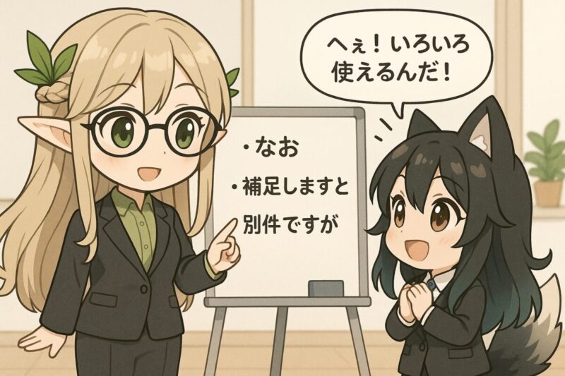 このように実際の文例を確認することで、補足や話題転換を自然に行う方法が理解しやすくなります。文章の流れを崩さずに情報を追加できることが、丁寧な印象を与える鍵となります。