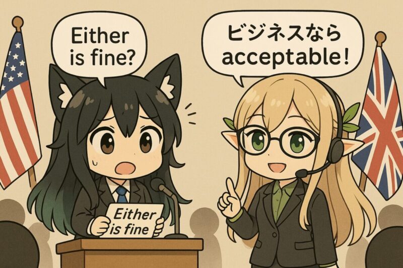 英語で表現する場合、カジュアルには Either is fine や Both work for me が使えます。ビジネスシーンでは I am fine with either option や Either option would be acceptable などがより丁寧です。相手の都合を優先する場合は Please choose whichever is more convenient for you という表現が適しています。国際的なやり取りでは、英語におけるニュアンスの差を理解し、場面に合った言葉を選ぶことが求められます。