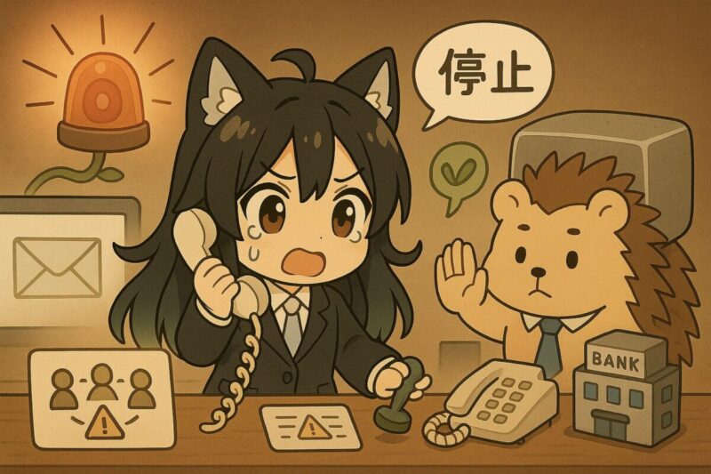 誤送信や記載誤りに気づいたら、まず相手方に送金停止と確認の依頼を直ちに伝え、並行して社内の責任者と金融機関に連絡します。ビジネスメール詐欺の被害では、迅速な金融機関連携で資金の一部回復ができた事例が紹介されています【5】。対応手順は、事前に社内プレイブックとして定義し、緊急連絡網とともにアクセスしやすい場所に保管しておくと機動力が上がります。これらのことから、初動と連絡先の整備が被害抑止のカギといえます。