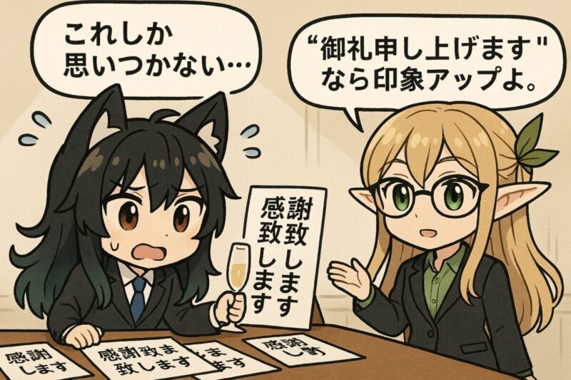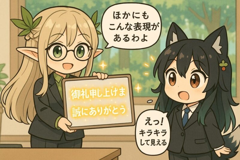 • フォーマルな場面では「御礼申し上げます」や「誠にありがとうございます」を使うと印象が良くなる