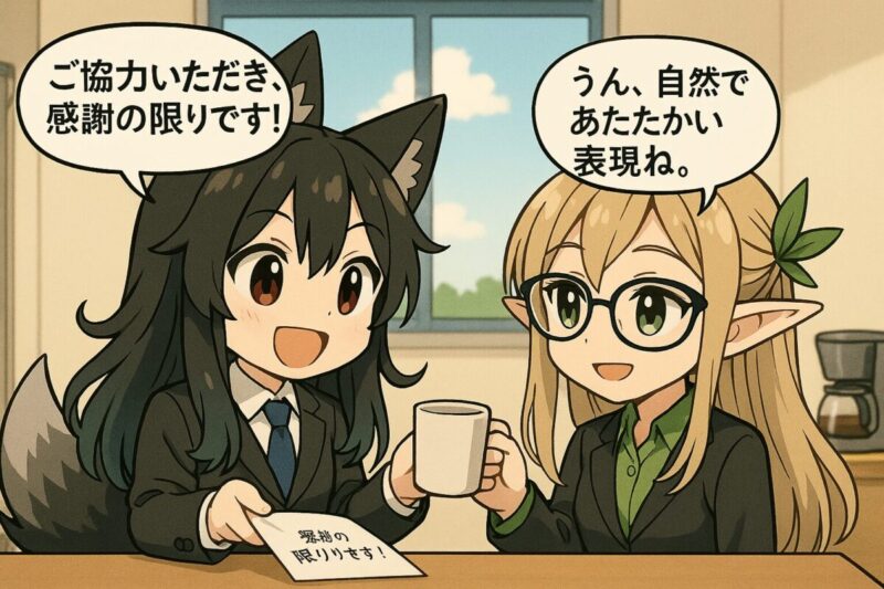 「感謝の限りです」は、特に親しい間柄の上司や同僚に対して使える柔らかい感謝の表現です。堅すぎず、しかししっかりと感謝の気持ちを伝えることができるため、さまざまなシチュエーションで使いやすい言葉です。