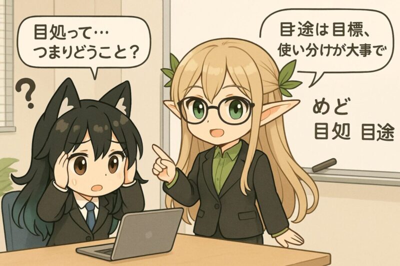 目途(もくと) | 目標・到達点 | 計画目標、完成時期の表現 | 見通しの意味で安易に使わない |