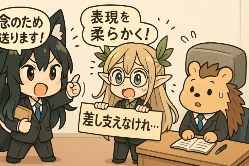 念のためは便利ですが、多用すると相手の能力や誠実さを疑っているように響くことがあります。例えば、口頭で伝えた内容を改めて送る際に、相手の記憶を前提にした文脈だと、念のためが相手の失念を想定した含みとして受け取られる余地があります。報告・連絡・相談の本務に当たる行動は念のためではなく、手順上当然の行為として明確化した方が誤解は起きにくくなります【4】。また、敬語体系上は、上位者に対しては相手中心の配慮と自己を低く表す謙譲の組み合わせが求められるため、念のためだけでなく、確認のためにや差し支えなければといったクッション語を併用して、行為の目的を相手軸で説明するのが無難です【3】。