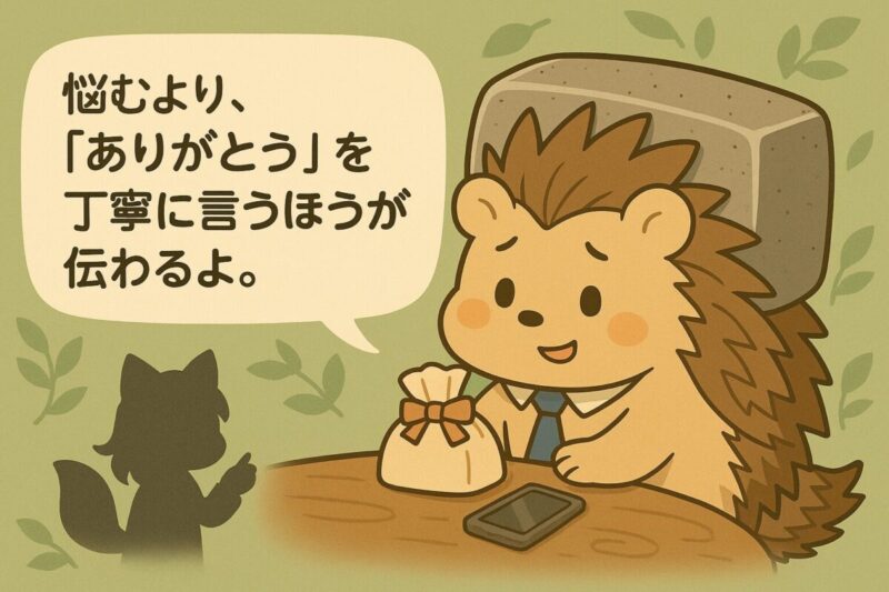 渡す際に、「ほんの気持ちだから、お返しは気にしないでね」と一言添えると、その場で相手の不安を和らげられます。メッセージで送る場合も、配送後すぐに「受け取ってくれたらそれだけでうれしい」という形で伝えると、余計なプレッシャーを与えずに済みます。