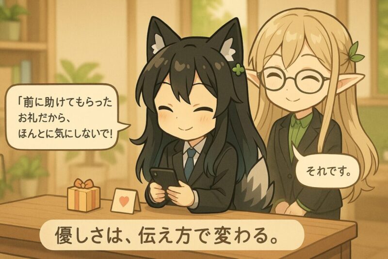 この記事では、友達や先輩、職場の同僚など、さまざまな関係性で使える自然なフレーズやマナーの考え方を整理しながら、相手に負担をかけず、感謝だけを受け取ってもらうための言葉選びを具体的に解説します。