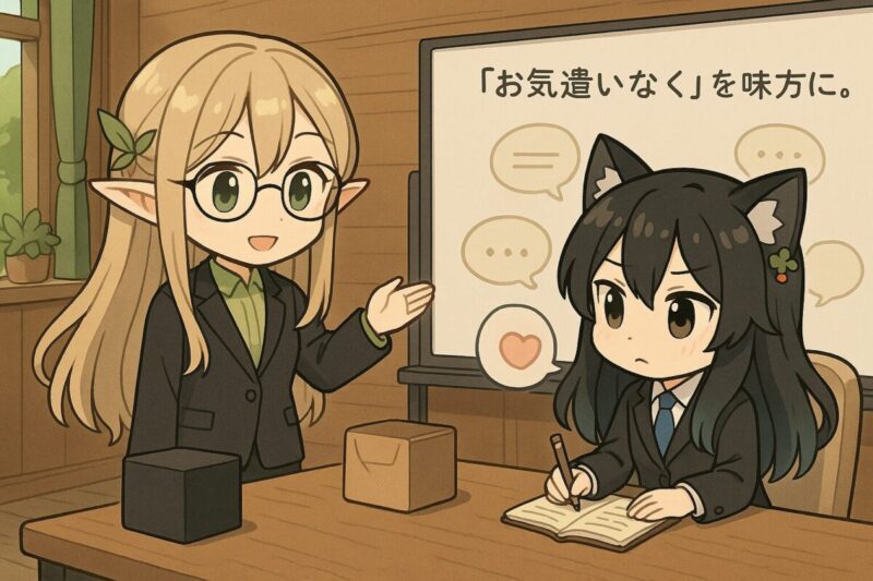 敬語では、否定表現をストレートに言うよりも、「お気遣いなく」「十分です」「お受け取りいただければうれしいです」など、相手の行動を肯定しながら負担を減らす言い回しが効果的です。これらを組み合わせることで、立場が上の相手にも失礼なく、お返し不要の意図を伝えられます。