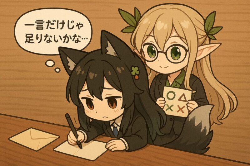 “理由+安心+ありがとう”が入っていれば、形が少し違ってもちゃんと伝わるよ。