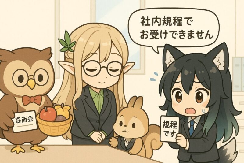 公務・高コンプラ職種 | 法令・倫理を明確化 | 「職務上、利害関係者からは受け取れません」 | 「関係法令により受領が禁じられております。ご厚意に感謝のうえ、辞退申し上げます」 | 贈答品辞退のご連絡(法令遵守) |