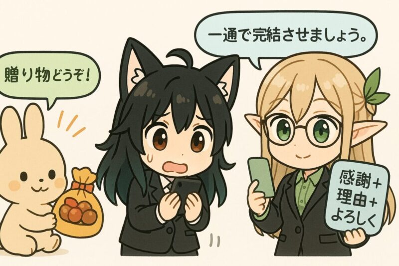 断りきれずに受け取ってしまった場合は、早期の丁寧な連絡で意図を補足します。具体的には、改めて感謝を伝えたうえで次回からはお気持ちだけ頂きますと方針を共有し、差し戻しが可能なら相談のうえで返送の手順を確認します。気まずさは時間経過で増幅するため、早い説明が心理的負担を軽くします【5】。また、相手の厚意を否定しないよう、前回はありがたく頂戴しましたがという枕詞を入れると誤解を避けやすくなります。