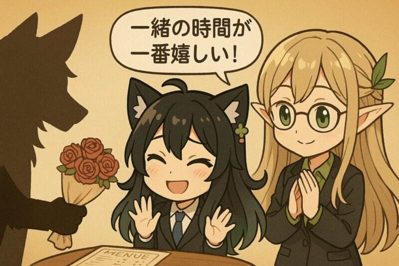・気持ちはすごく嬉しいよ。でも、物より一緒に過ごす時間の方が私にとって大切だから、これからは時間を贈り物にしてくれたら嬉しいな。