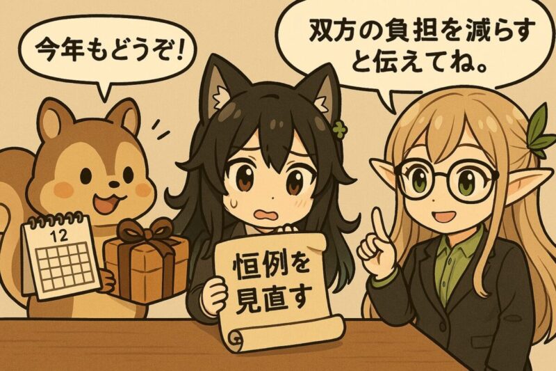 - 毎年の贈答は双方の負担軽減を軸に合意を作る