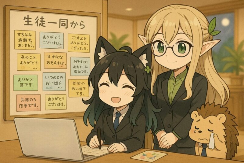 修学旅行では、生徒一人ひとりの行動やマナーに気を配ってくれるホテルスタッフの努力があります。代表者がまとめて手紙やメッセージを送るのが効果的です。