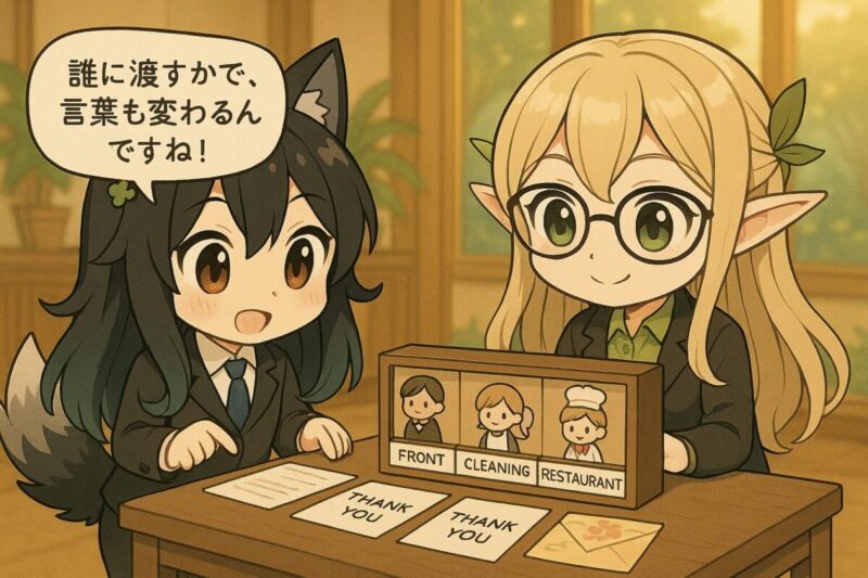 A. 当日でもまったく問題ありません。むしろ、滞在中の温かい対応を受けた直後のほうが気持ちが伝わりやすいです。チェックアウト前にフロントに渡したり、部屋に置いておくのも丁寧な方法です。